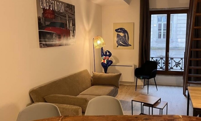 L'appartement bénéficie d'un bel espace de vie optimisé, avec une mezzanine permettant de séparer intelligemment les espaces. Il est équipé de double vitrage, pré-équipé pour la fibre, et sécurisé par un digicode.