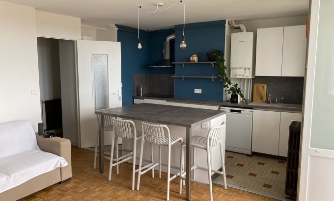Situé au 4e étage d'une résidence sécurisée avec interphone, dans une rue calme, cet appartement traversant de 67 m² offre un cadre de vie confortable et lumineux. Rénové et soigneusement aménagé, il se compose d'un séjour lumineux avec cuisine ouverte entièrement équipée, incluant réfrigérateur avec congélateur, plaques à induction, four, micro-ondes, lave-vaisselle et îlot central.